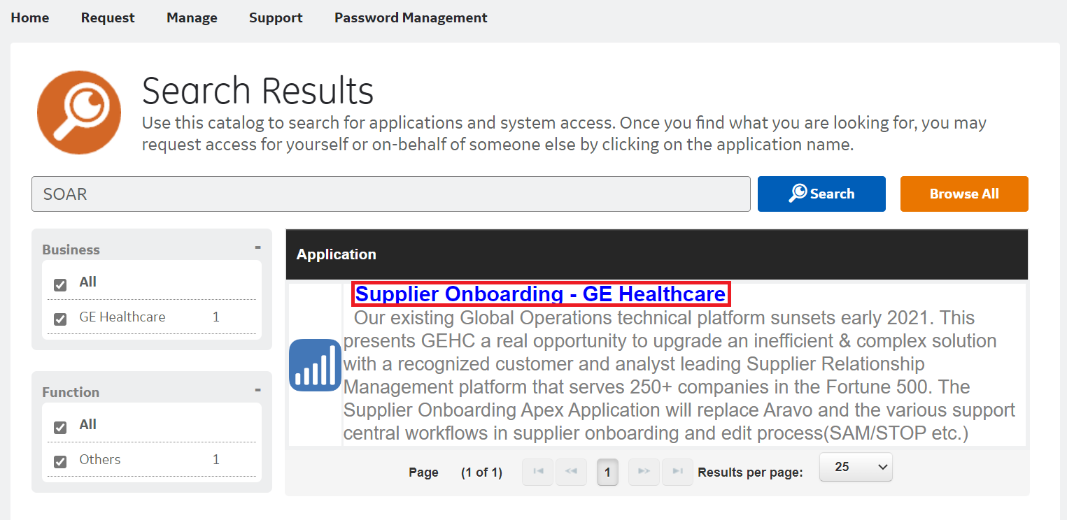 Click Supplier Onboarding - GE Healthcare. A new window opens.